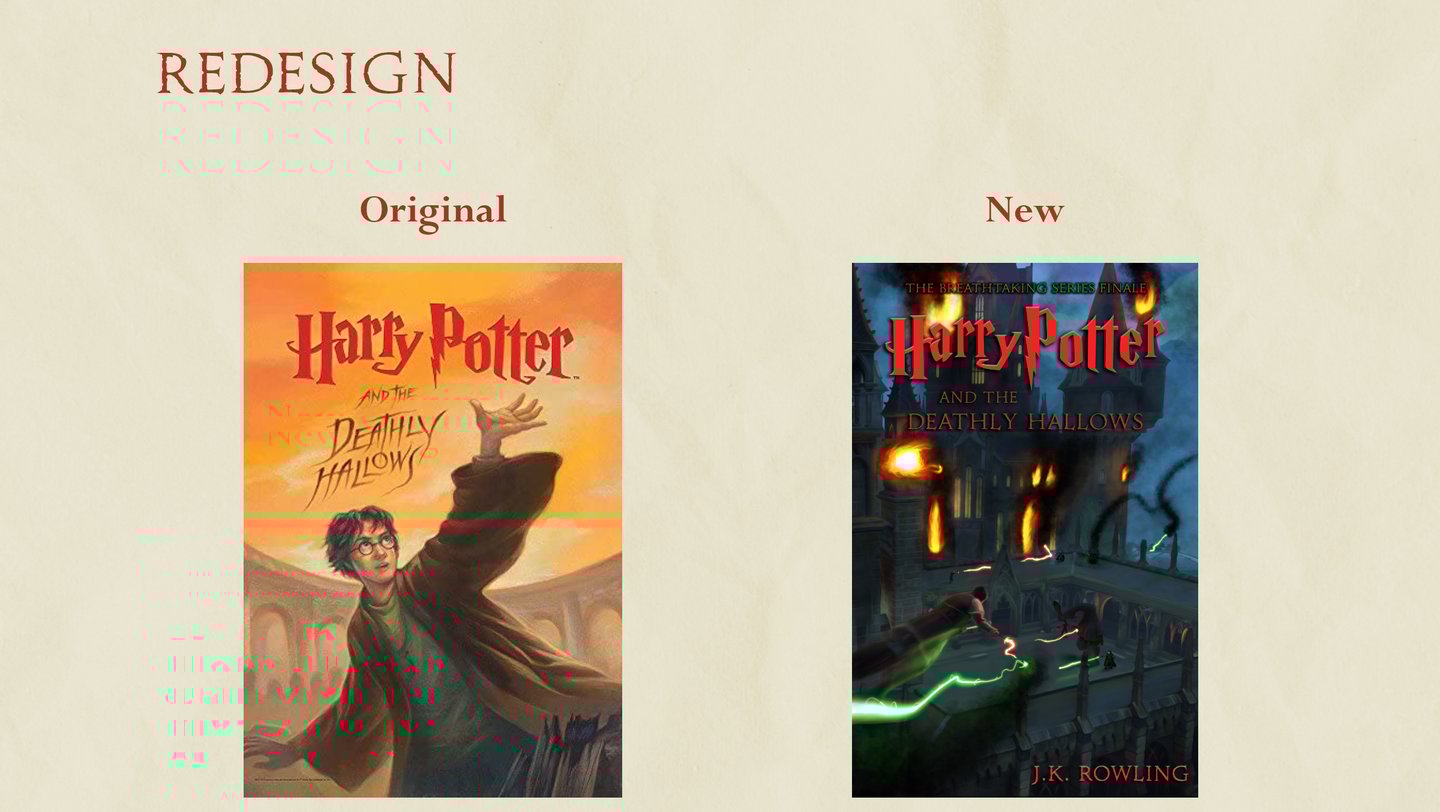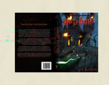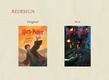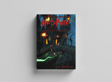 This Harry Potter and the Deathly Hallows book cover redesign was inspired by the epic visuals of its movie counterpart. The movie had some epic scale battles and scenes that this book cover really doesn't show. I also wanted to highlight the battle of Hogwarts rather than yet another picture of Harry Potter on the cover. I also wanted to give this new book cover the sense of an epic finale that would result in a battle at the location that we've come to know and love.