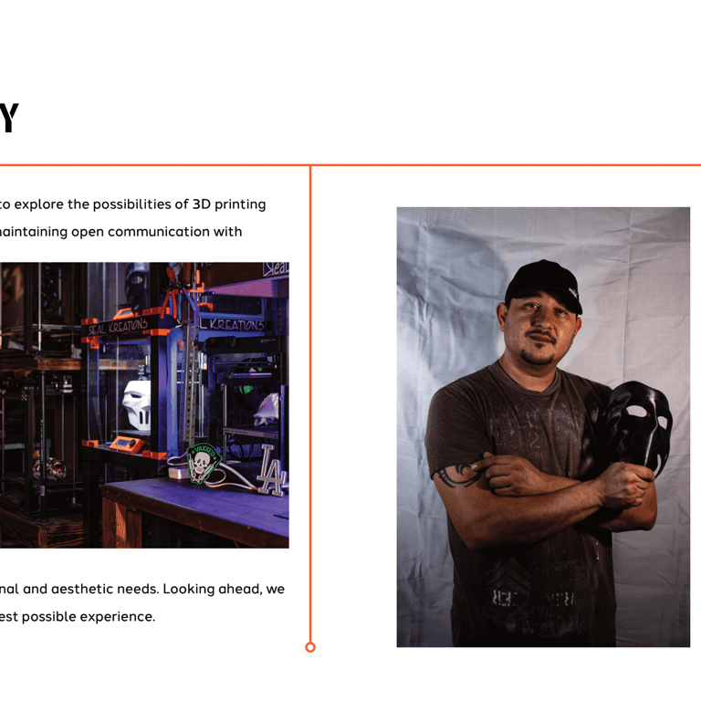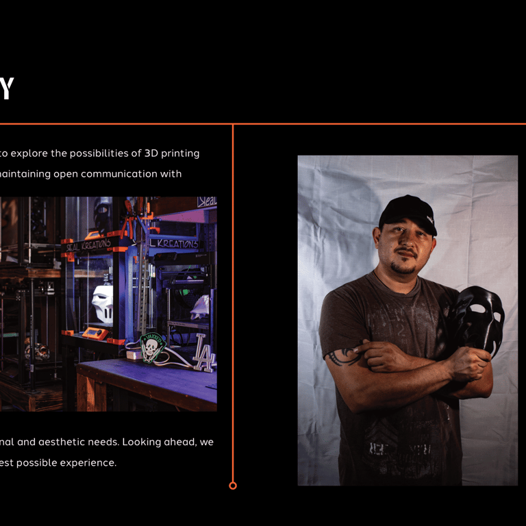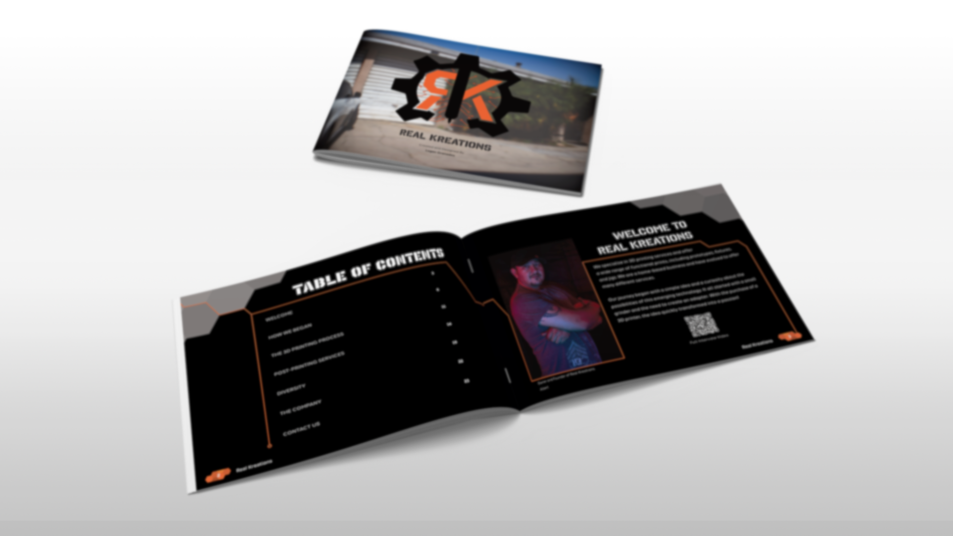 This project involved the creation of a comprehensive Company Look Book and a series of video interviews for Real Kreations, a 3D printing company based in South El Monte, California. The Look Book showcases the company's innovative 3D printing services and products, designed to visually communicate their capabilities to potential clients. The project also included video interviews with the owner, providing personal insights into the company's mission and the advanced technology behind their operations. This combination of visual storytelling and direct communication allowed Real Kreations to enhance its brand presence and engage a broader audience.