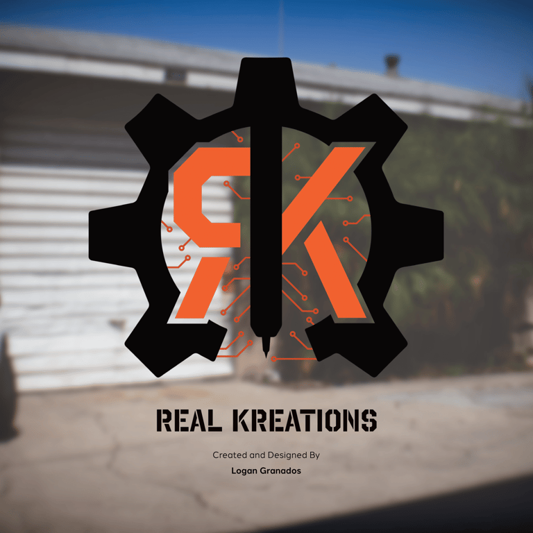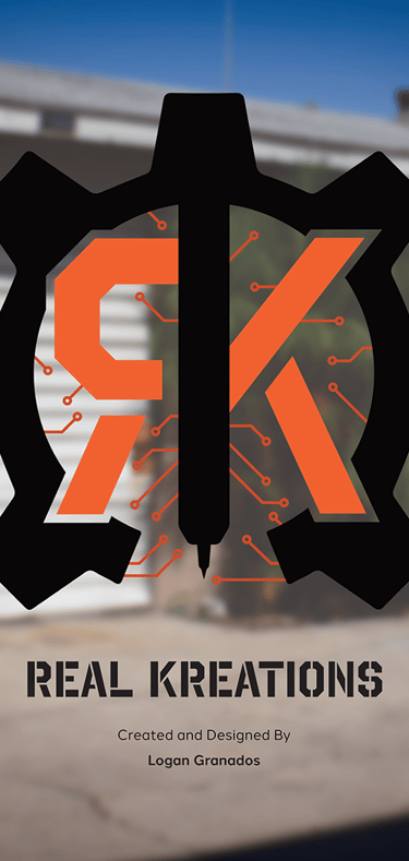 Real Kreations had a few simple requests for a logo redesign. One of which was to keep the gear symbol as its the logo for 3D Printing Open Source which many 3D Printing Companies and 3D Modelists may recognize. Another goal was to not strive too far from their original branding so their clientele may still recognize them when searching for them.