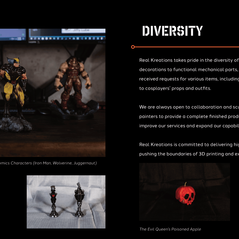 Before showcasing the final product, the company's lookbook, let's showcase some of the best photos from not only Real Kreations' shop but also their 3D Prints and some pictures of the owner, Albert.